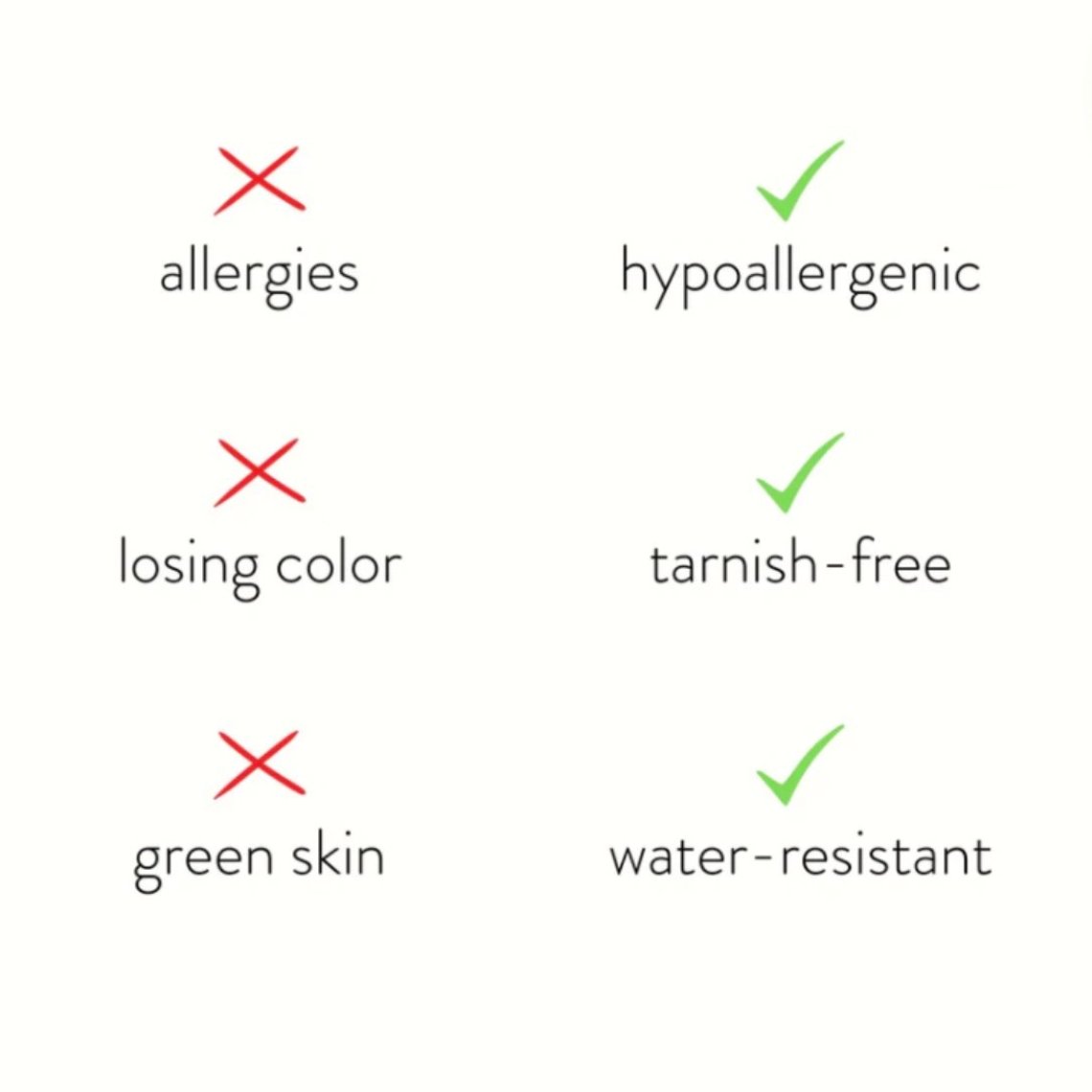 Realizzato in acciaio inossidabile impermeabile, non dovrai mai più preoccuparti di dita verdi, gioielli che sbiadiscono o si appannano!