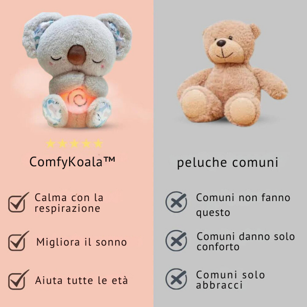 Lottate contro le notti insonni? Il nostro ComfyKoala™ aiuta a calmare la mente e a migliorare la qualità del sonno. Progettato per sincronizzarsi con i ritmi naturali del corpo, offre un modo semplice ed efficace per addormentarsi velocemente e godere di un sonno profondo e rigenerante. A differenza di altre soluzioni, non si limita a mascherare il problema, ma promuove un vero e proprio rilassamento.