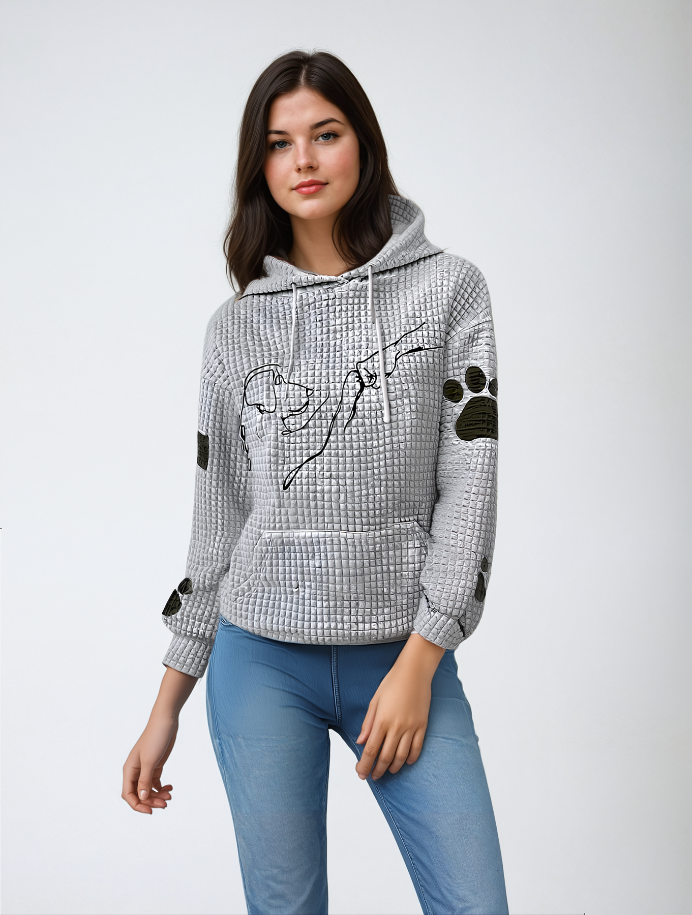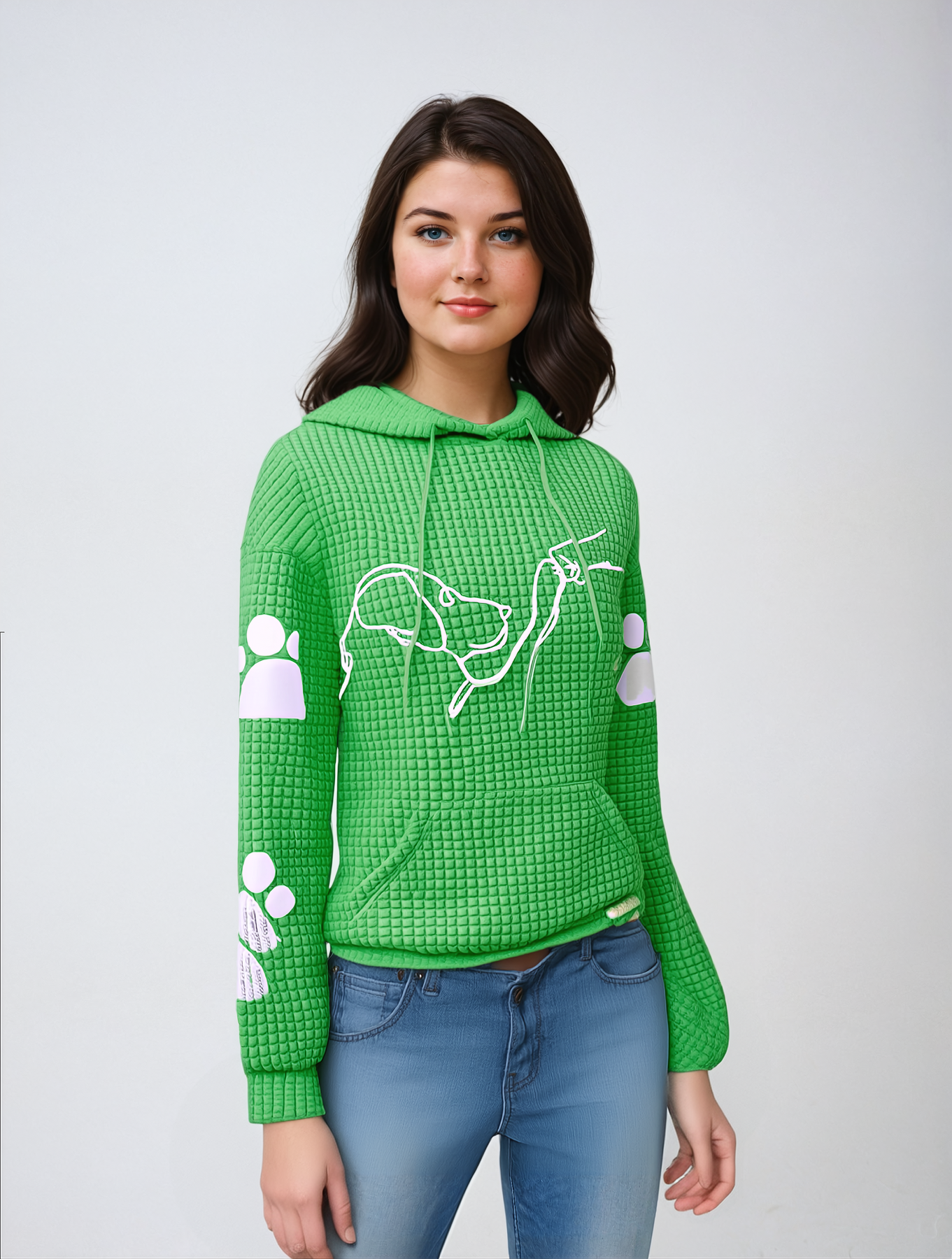 Design adorabile: La felpa con cappuccio Audrey presenta un'affascinante grafica con cani e zampe, che aggiunge un tocco stravagante al vostro look e celebra il vostro amore per gli animali domestici.
