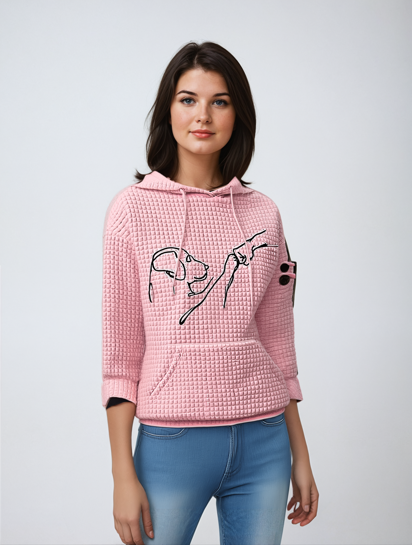 Morbida e accogliente: Realizzata in morbido tessuto waffle-knit, questa felpa con cappuccio offre calore e comfort, rendendola perfetta per il tempo libero o per le uscite casual.
