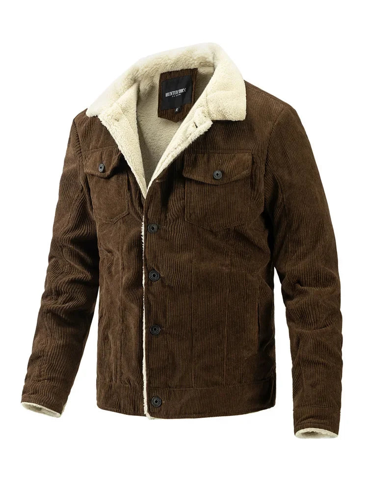 Elevate il vostro guardaroba con il fascino senza tempo di RICK | Cappotto in velluto vintage da uomo. Progettato per tenervi al riparo e alla moda, questo cappotto è perfetto per le fresche giornate di primavera e autunno.
