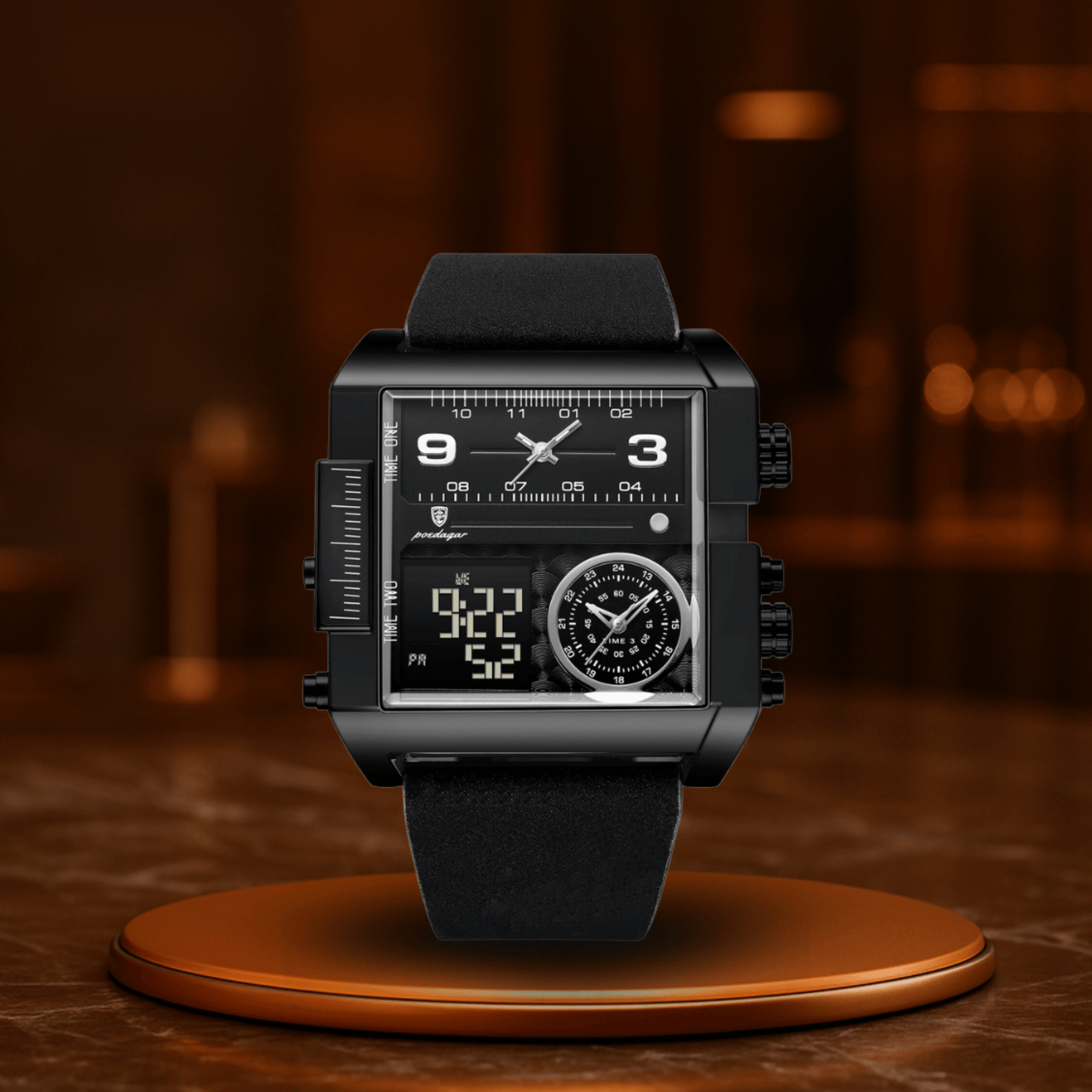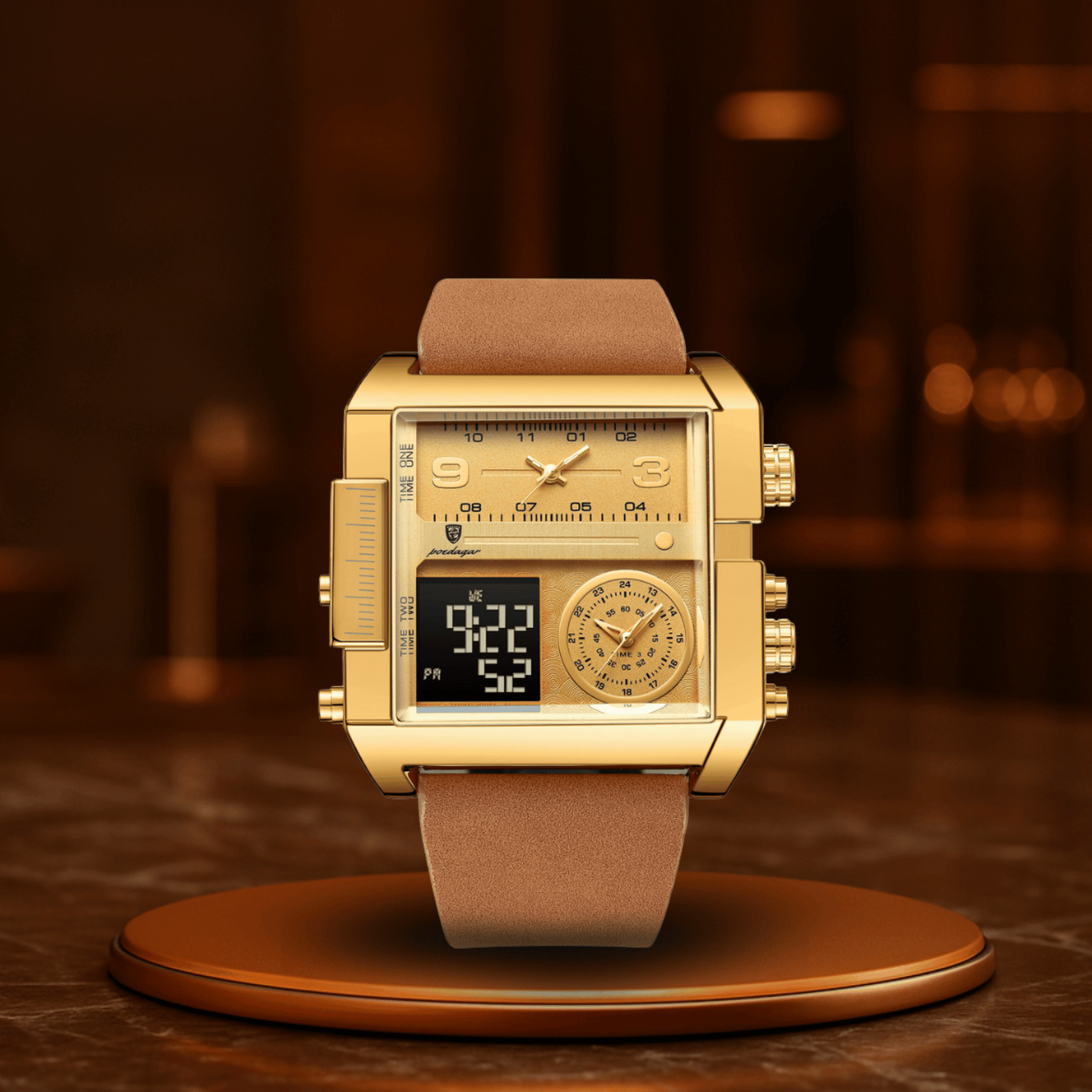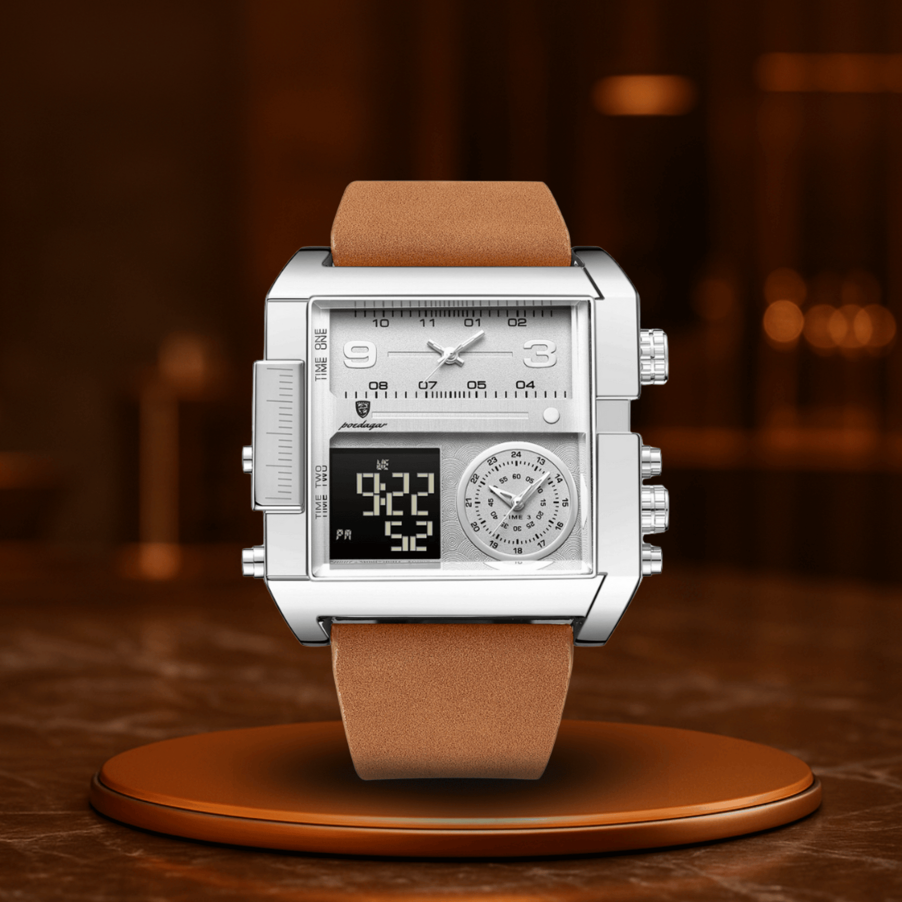 Il Digitaluxe non è semplicemente un orologio – è un'opera di tecnologia ed eleganza che unisce senza sforzo il tuo tempo, il tuo stile e la tua organizzazione. Con un display digitale multifunzionale, un quadrante retroilluminato e un design rettangolare snodato, questo orologio è adatto sia per il giorno che per la notte. Perfetto per l'uomo che non vuole scendere a compromessi su funzionalità e lusso.