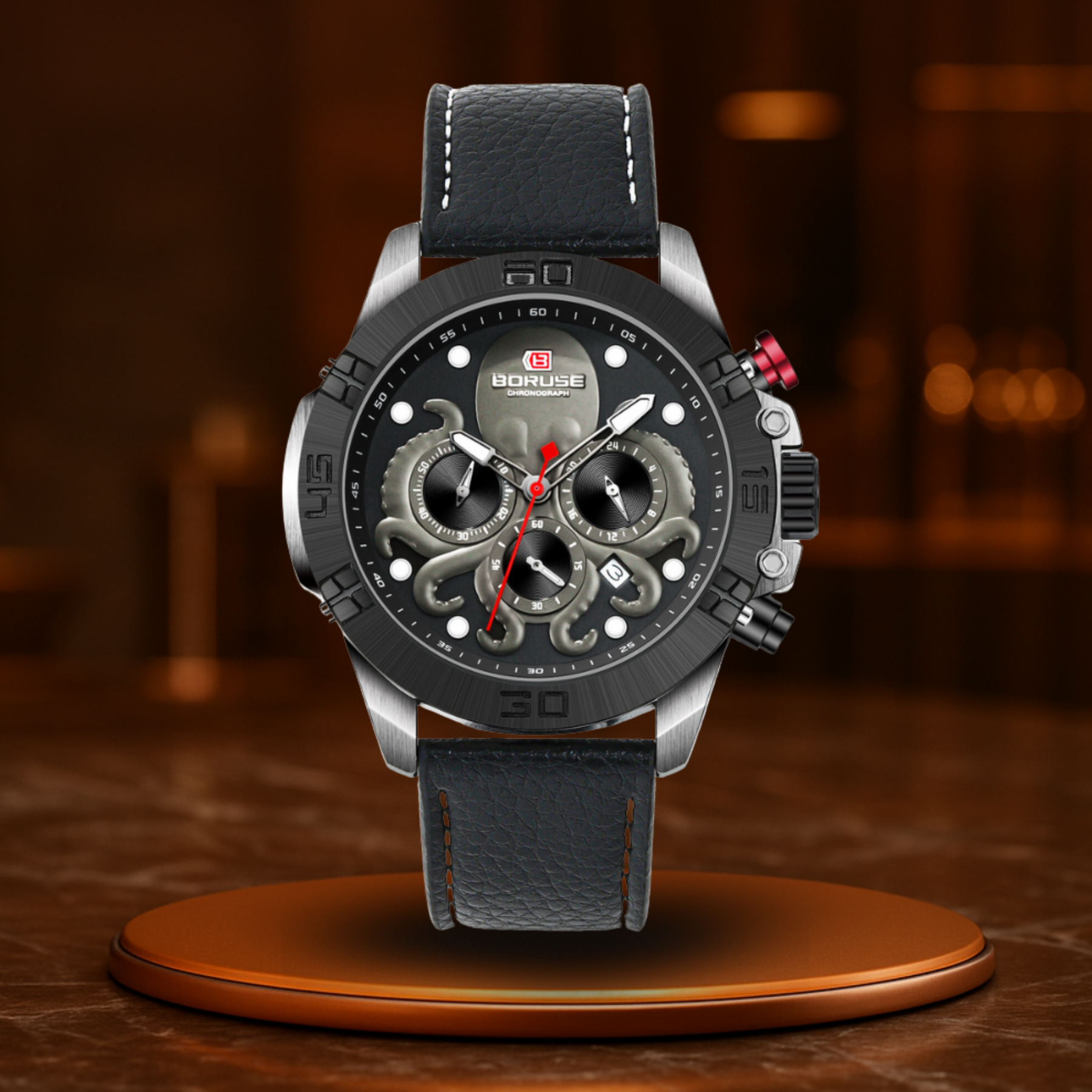 Il bracciale in pelle di alta qualità? Un equilibrio tra comfort, carattere e naturalezza. La funzione cronografo? Un vantaggio tattico per gli uomini che non si lasciano mai trasportare – ma si sincronizzano.