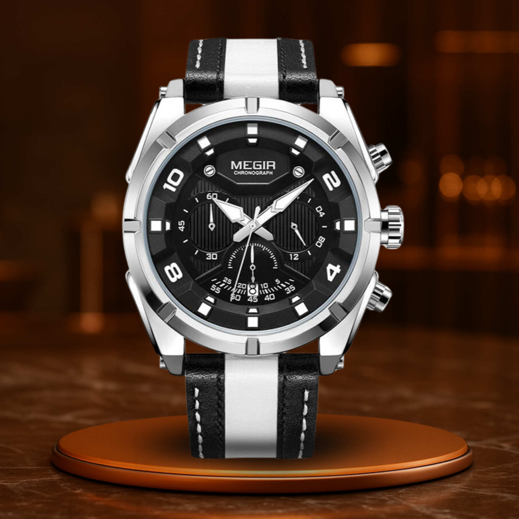 La funzione cronografo ti dà controllo tattico. La visualizzazione luminosa ti assicura di mantenere la visione, anche quando gli altri vedono solo ombre. E il design resistente agli urti e impermeabile? Costruito per l'imprevedibile – in riunioni, in montagna o in taxi a mezzanotte.