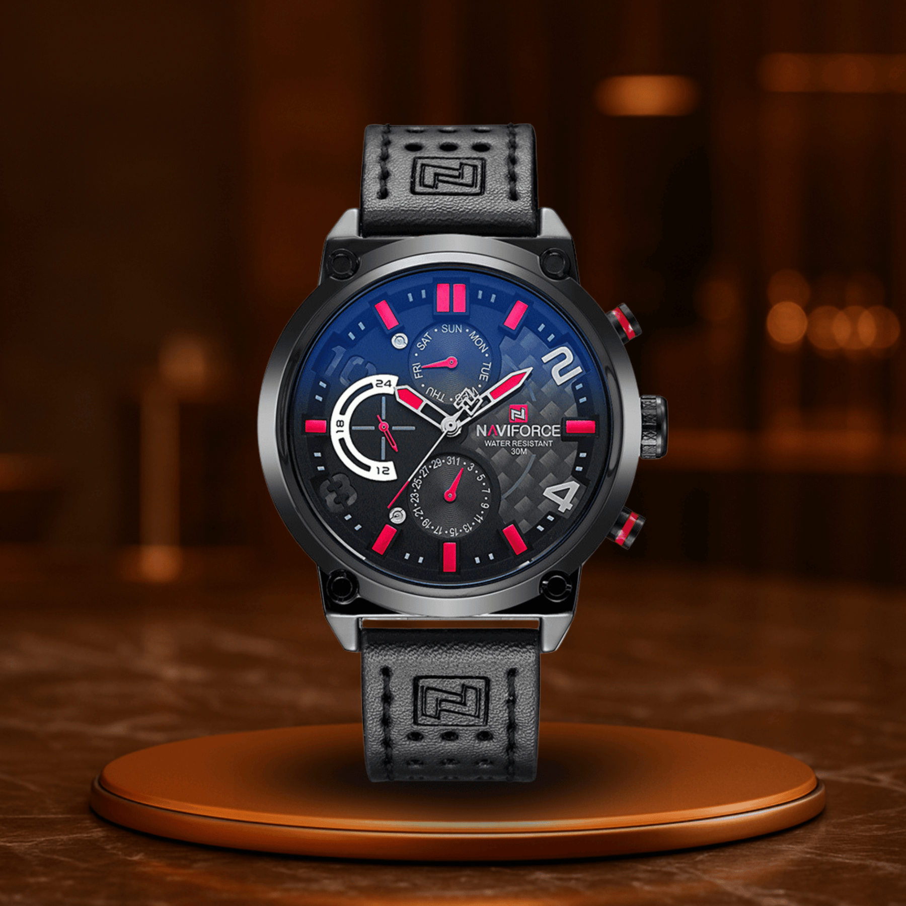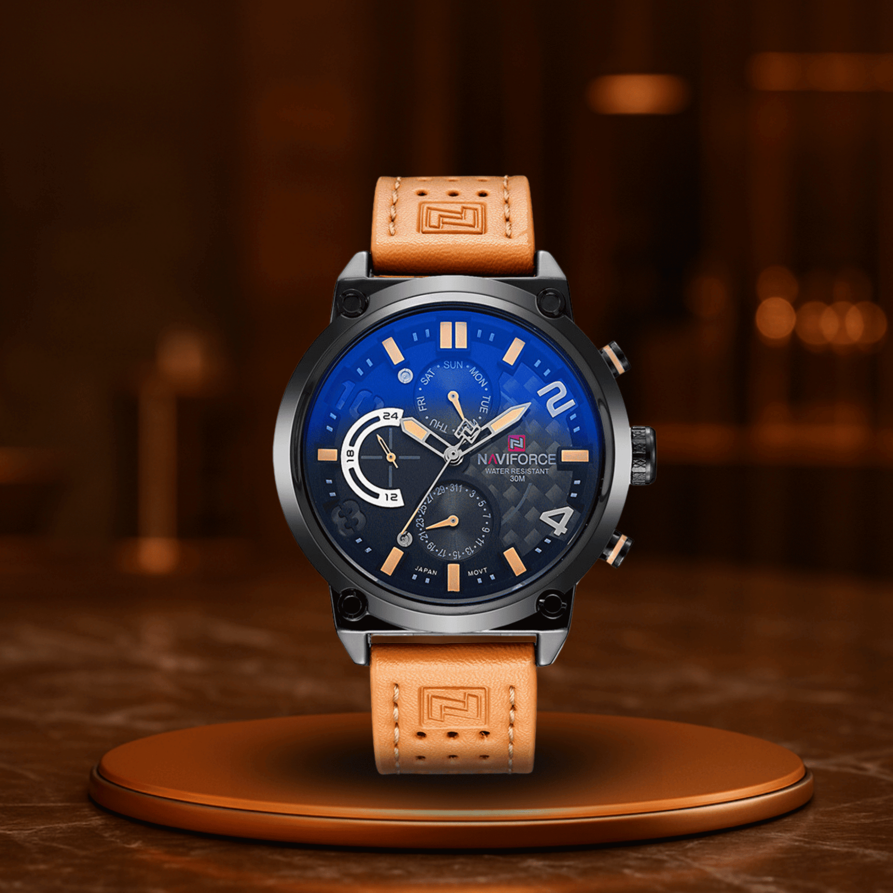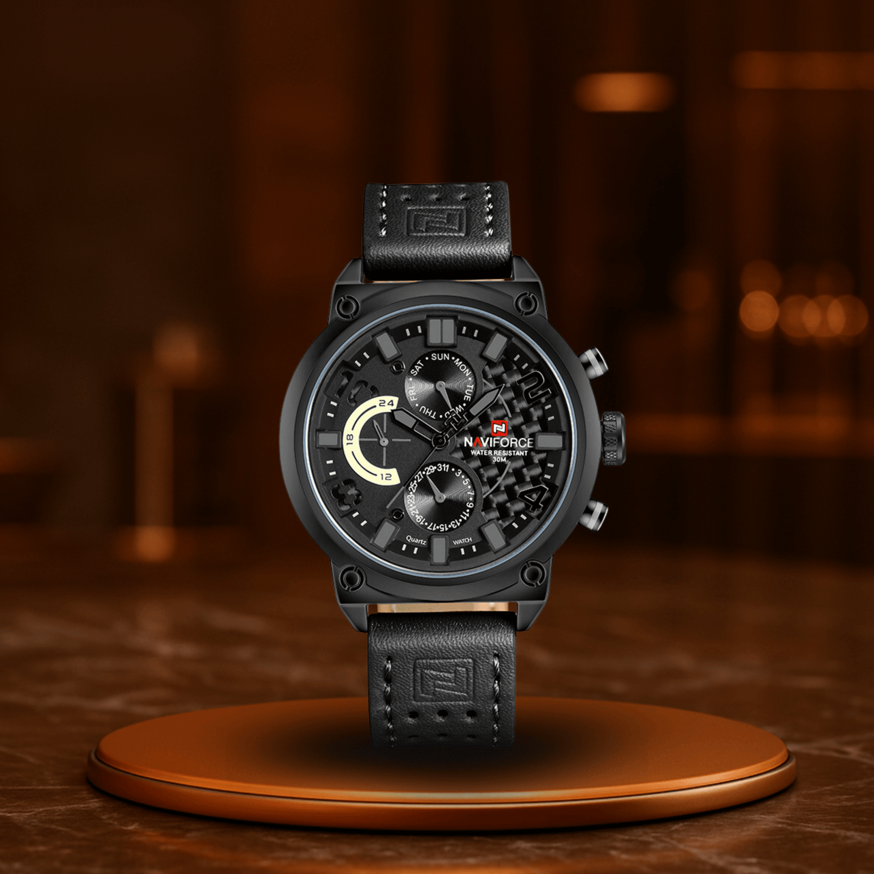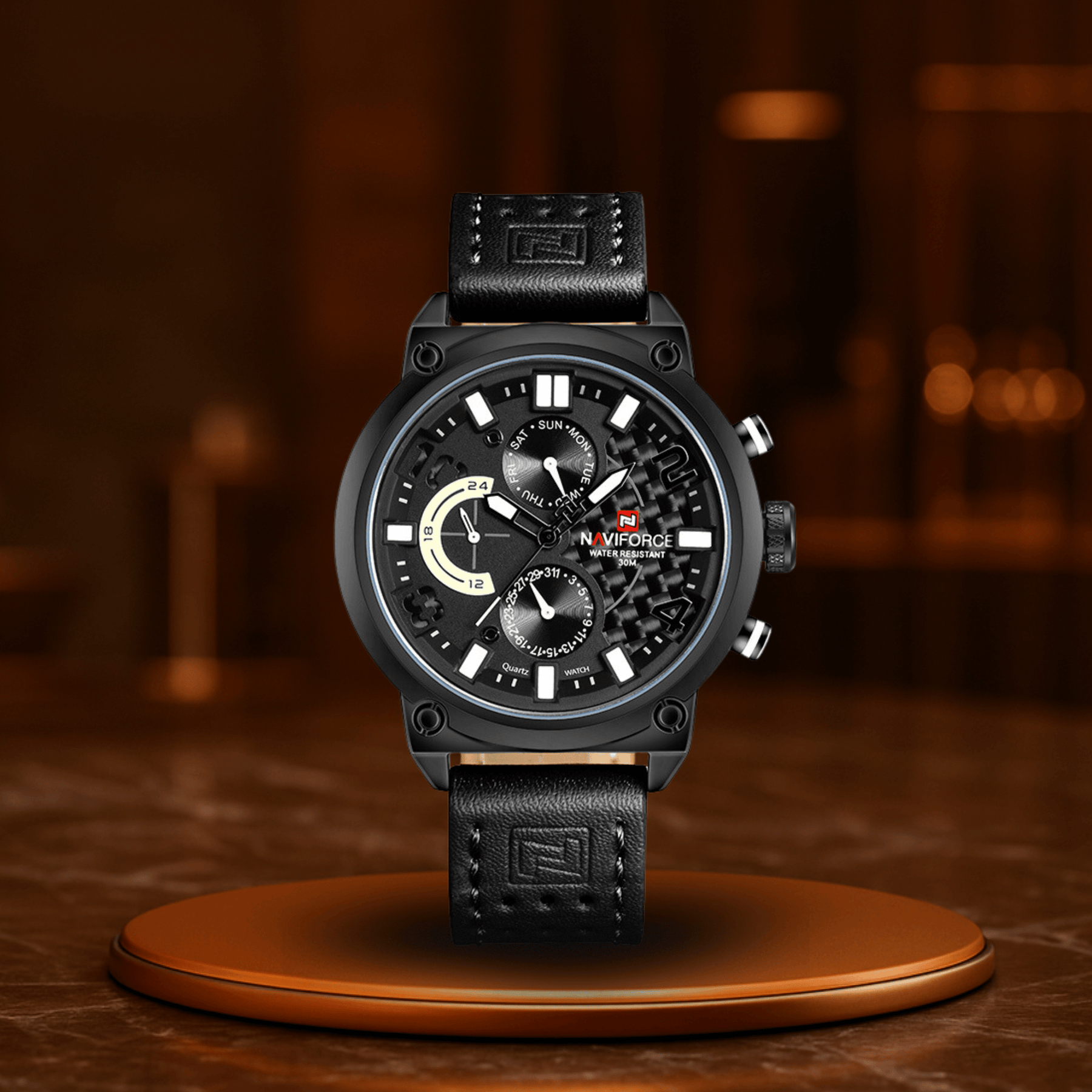 Il PrecisionX è progettato per uomini che non si accontentano di sapere solo l'ora, ma cercano un compagno che rispecchi le loro aspettative. Con il suo look militare elegante, un vero capolavoro in pelle e un movimento al quarzo preciso, questo orologio è più di un accessorio: è un compagno indispensabile per ogni occasione.